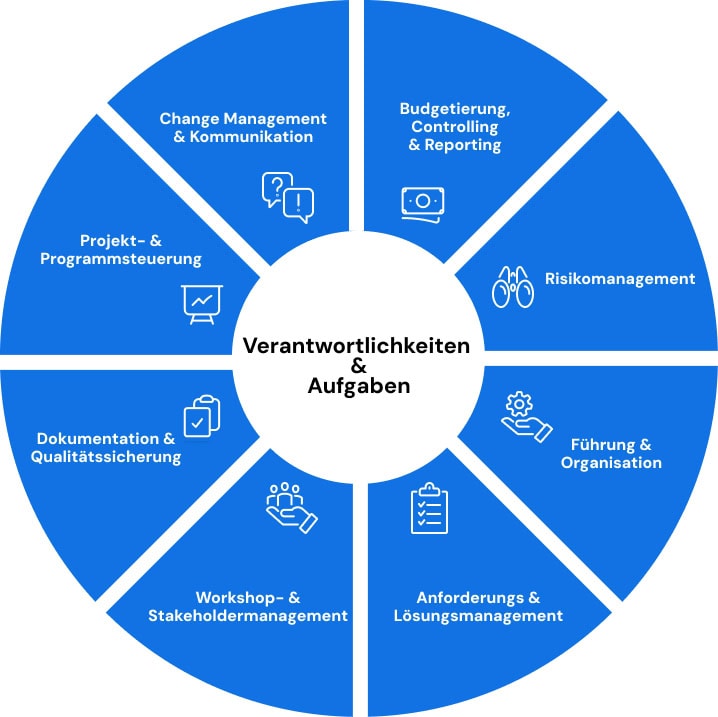 - Projektverwaltung sowie Steuerung von Management- und Lenkungsgremien